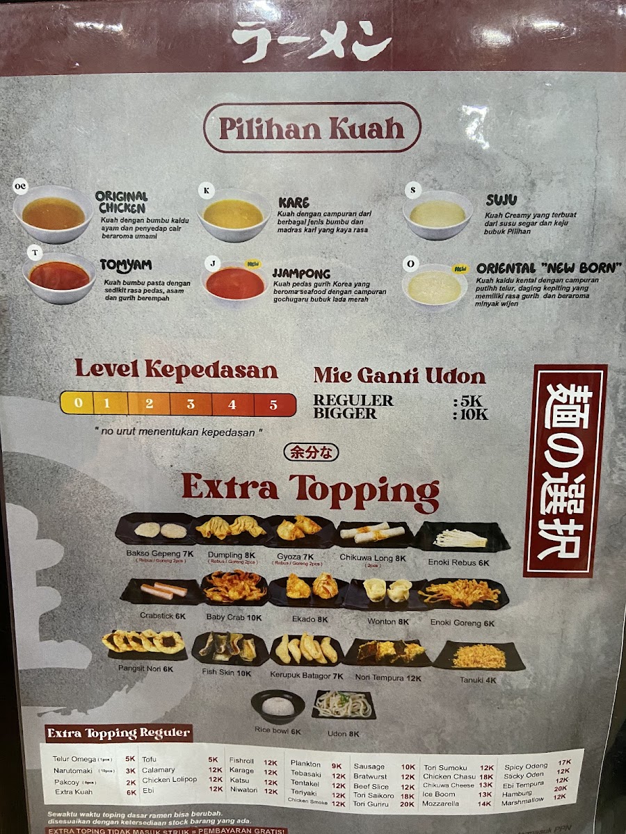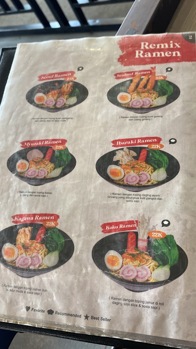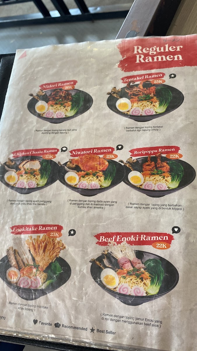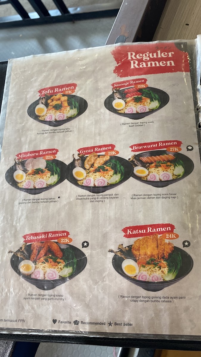 Welcome to Ramen Bajuri Soreang, a delightful culinary haven nestled in Bandung, Indonesia. This charming spot specializes in a diverse array of ramen varieties, each crafted to excite your palate. The regular menu features tempting options like Katsu Ramen—tender chicken filet garnished with aromatic spices, and Tebasaki Ramen, showcasing spicy chicken wings for a flavorful punch. For those craving more, the Bigger Ramen selections include the hearty Karnivor Ramen with a delectable mix of crispy wings and grilled chicken.